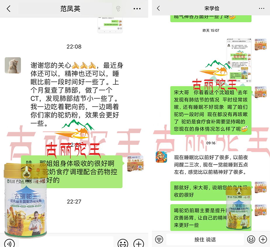 同行的司机老杨来到新疆古因水土不服常年的咳喘又犯了,但是喝了几杯古丽家驼奶粉后,还开玩笑说不知到是否是心理作用,身体得到了缓解,不亲身体验它真不知道妙处!